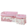 Die Utensilos im typischen LINODI LOOK sind aus hochwertigem 'Toile de Jouy' und klassischem Baumwoll-Vichykaro liebevoll von Hand gefertigt. Die Utensilos sind besonders dekorativ und eignen sich hervorragend, um Windeln, Haarbürste, Cremes und all die anderen Dinge praktisch und schön zu verwahren. Sie sind ein absoluter Blickfang in jedem Kinder- oder Badezimmer. Die Utensilos sind so konzipiert, dass sie einen natürlichen Stand haben und dennoch biegsam und weich sind.
